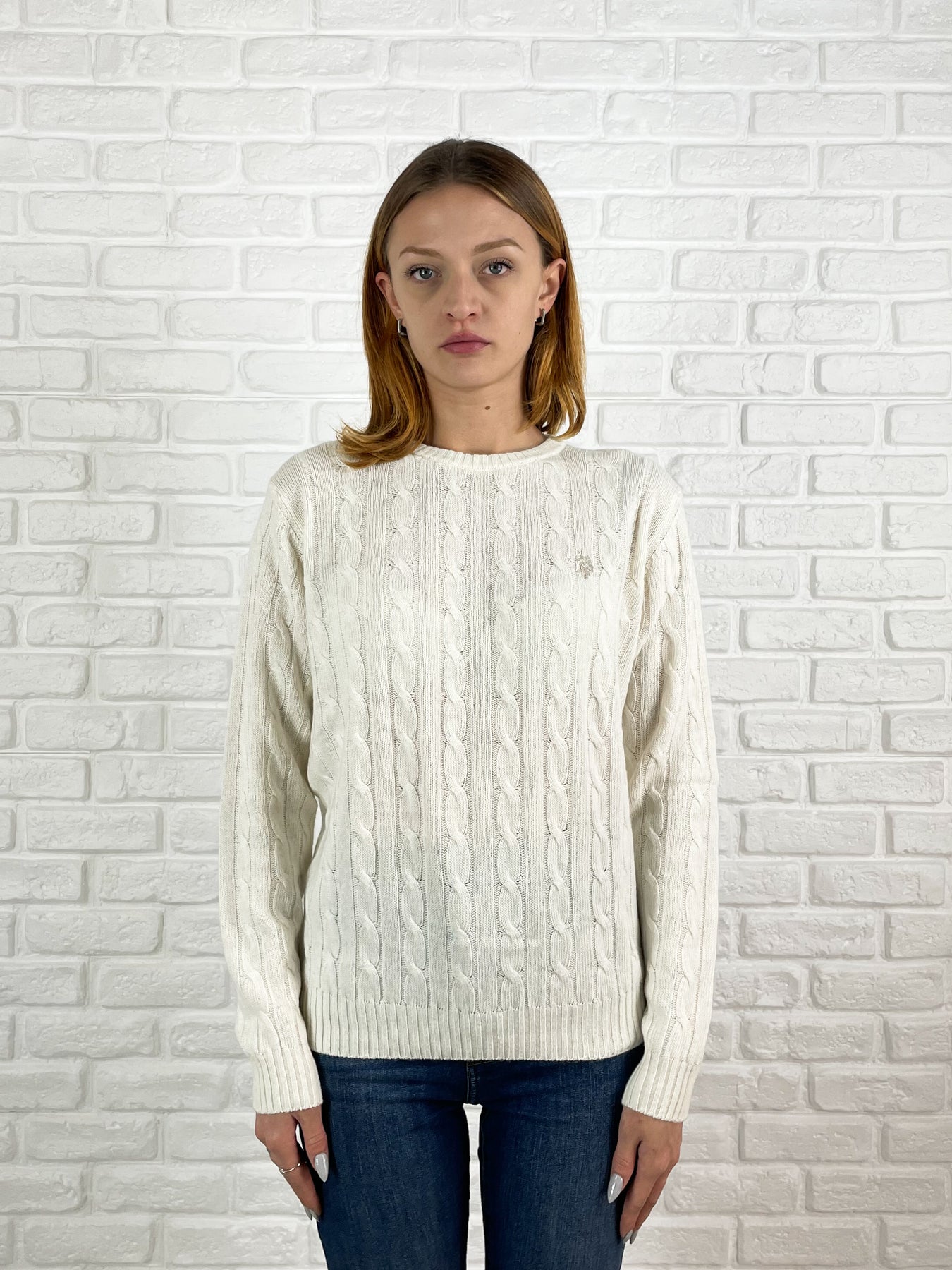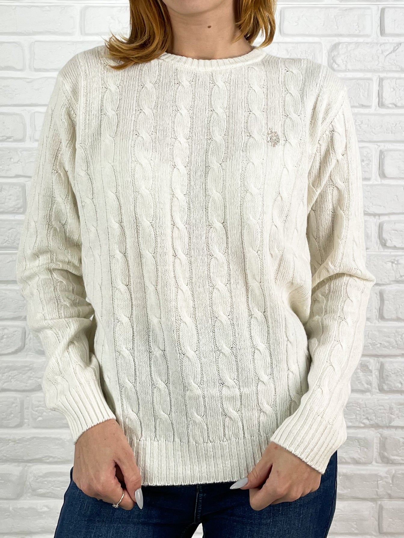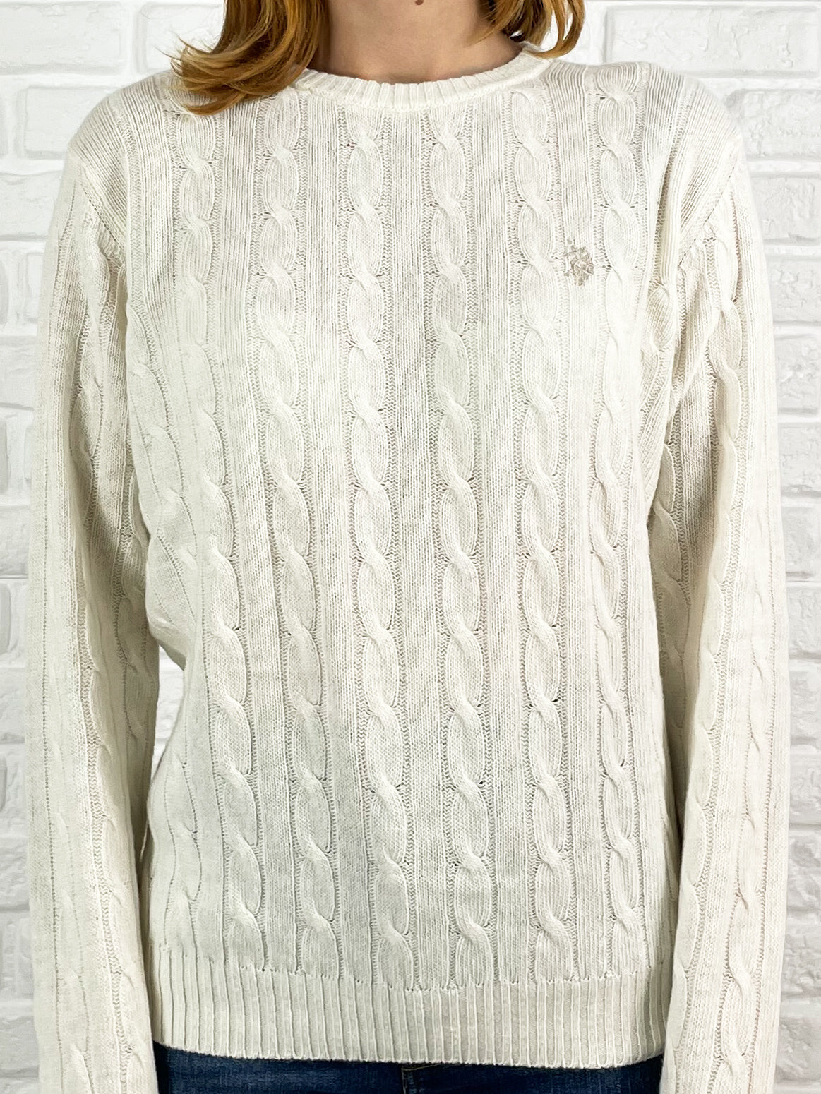 MAGLIONE BRIT U.S.POLO A TRECCE COLORE BIANCO LATTE
