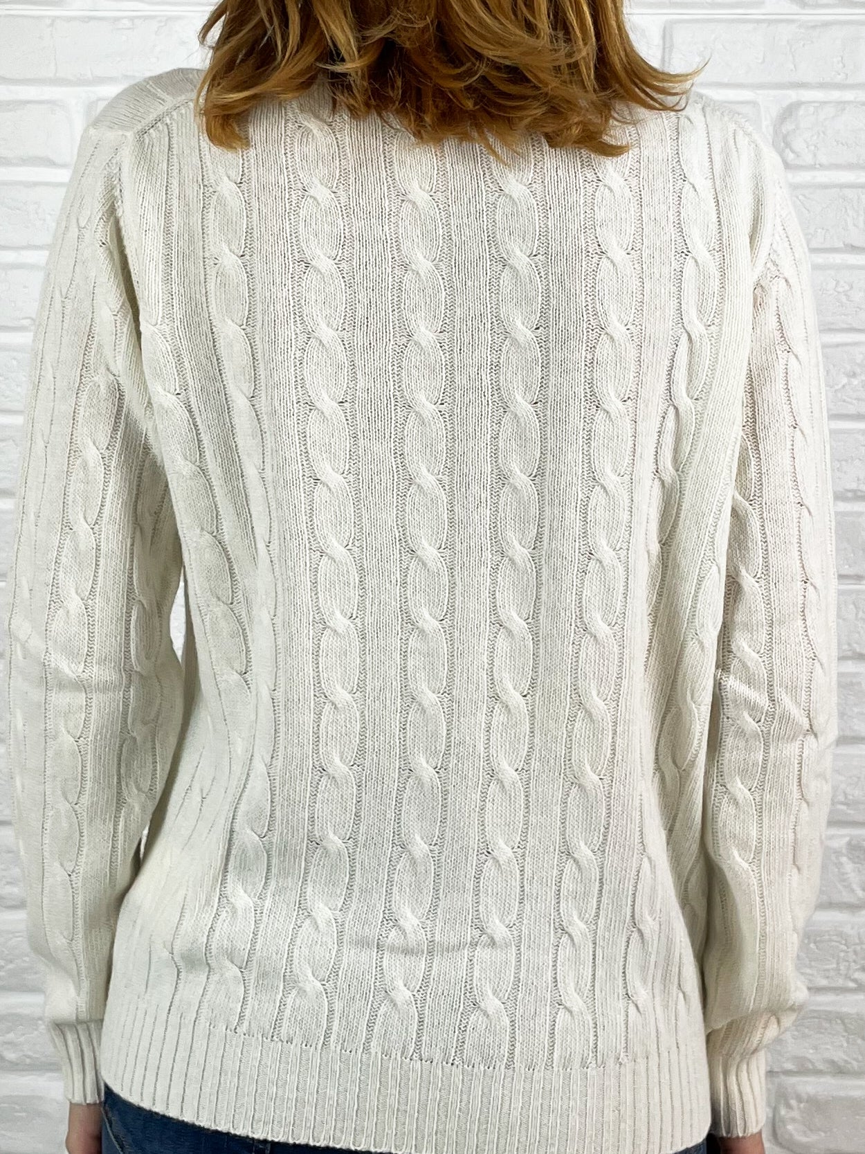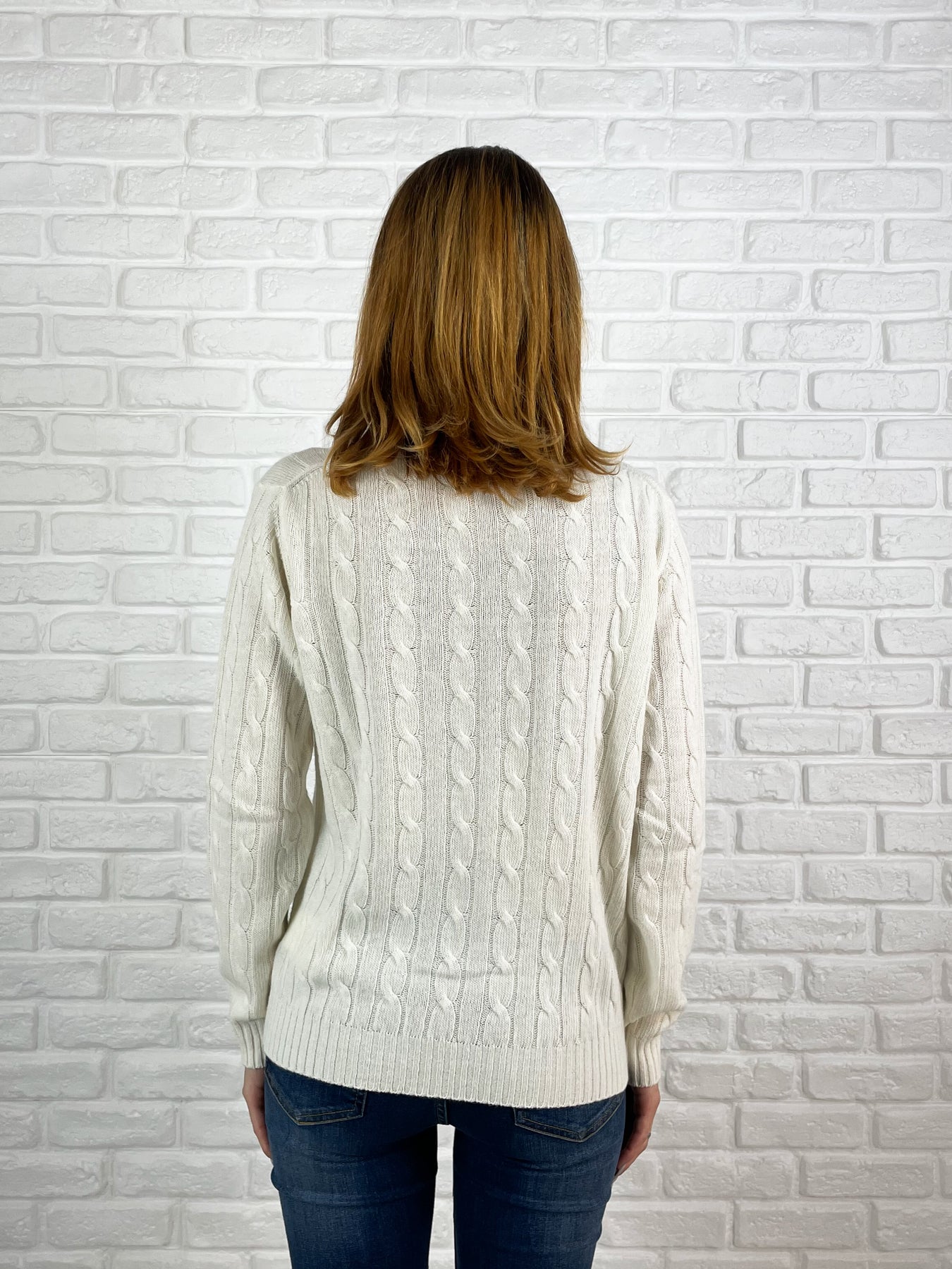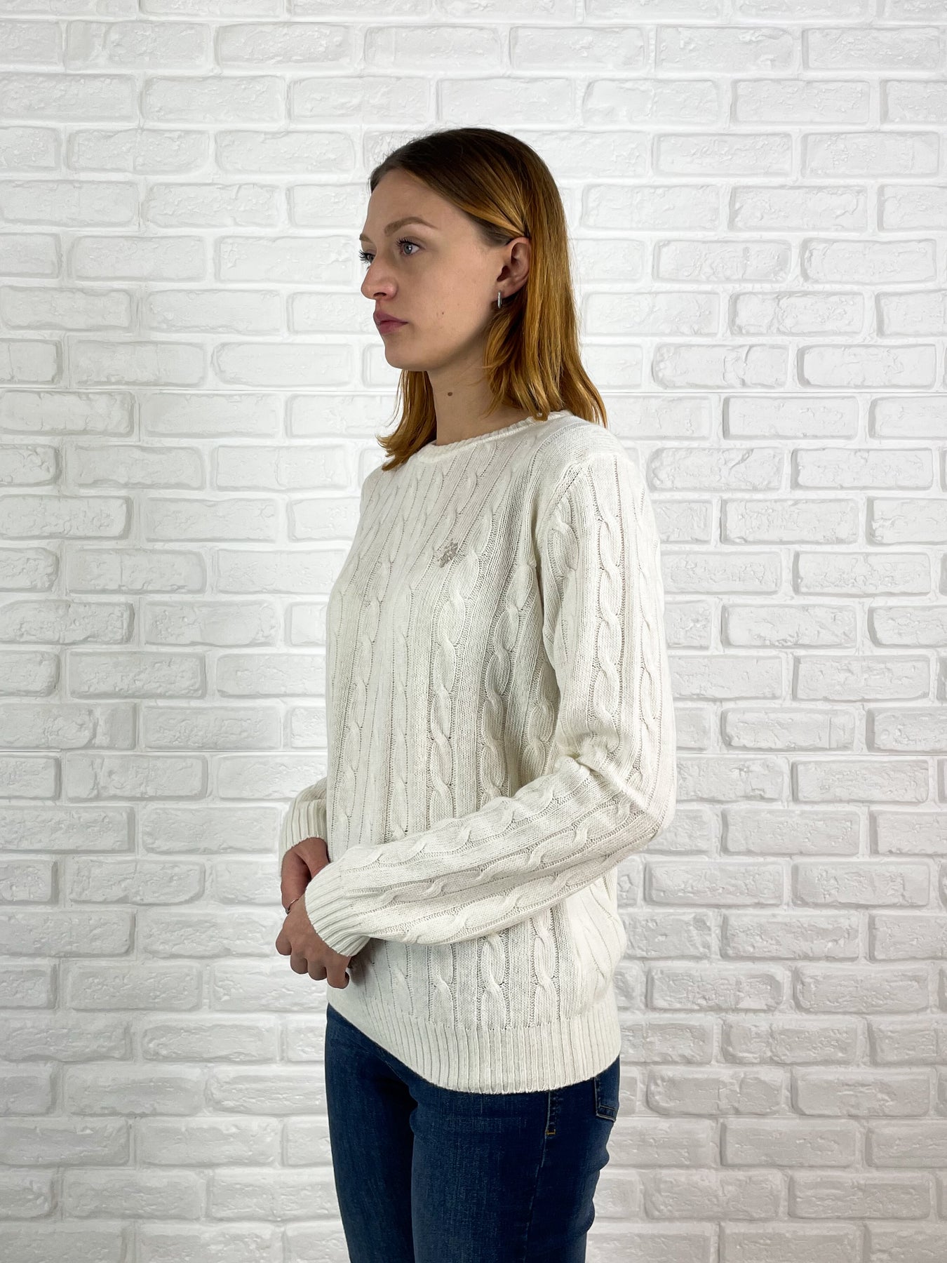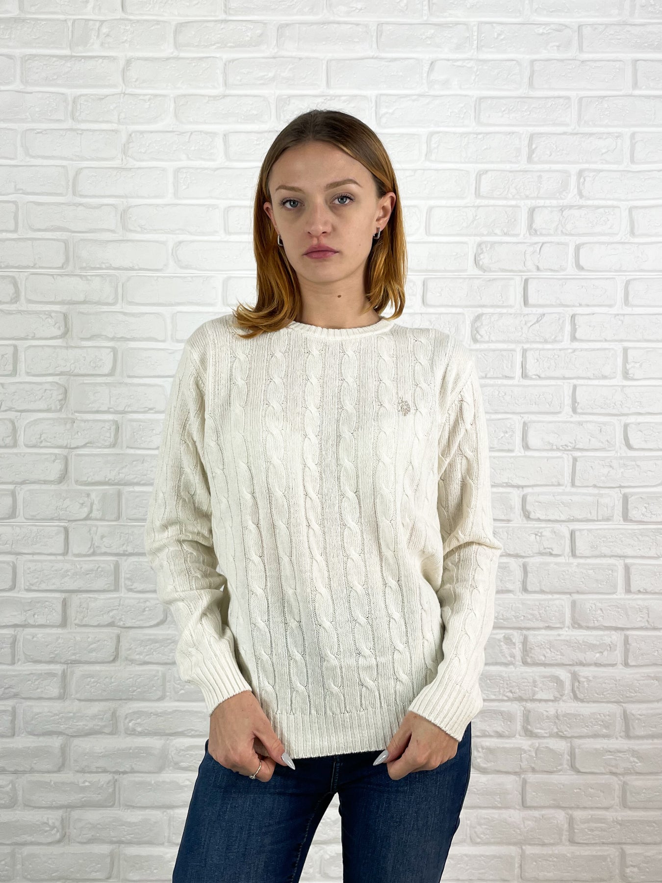 MAGLIONE BRIT U.S.POLO A TRECCE COLORE BIANCO LATTE