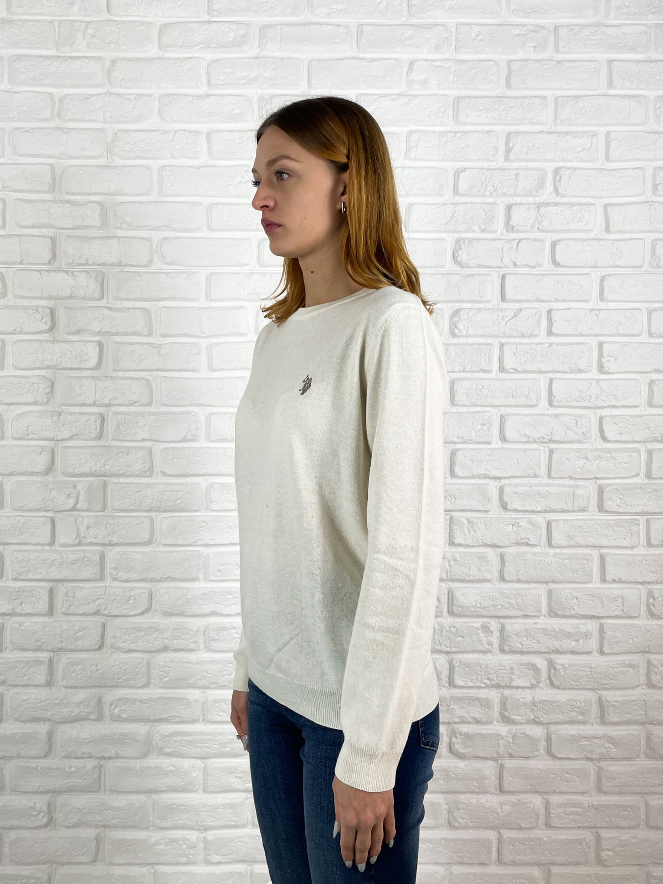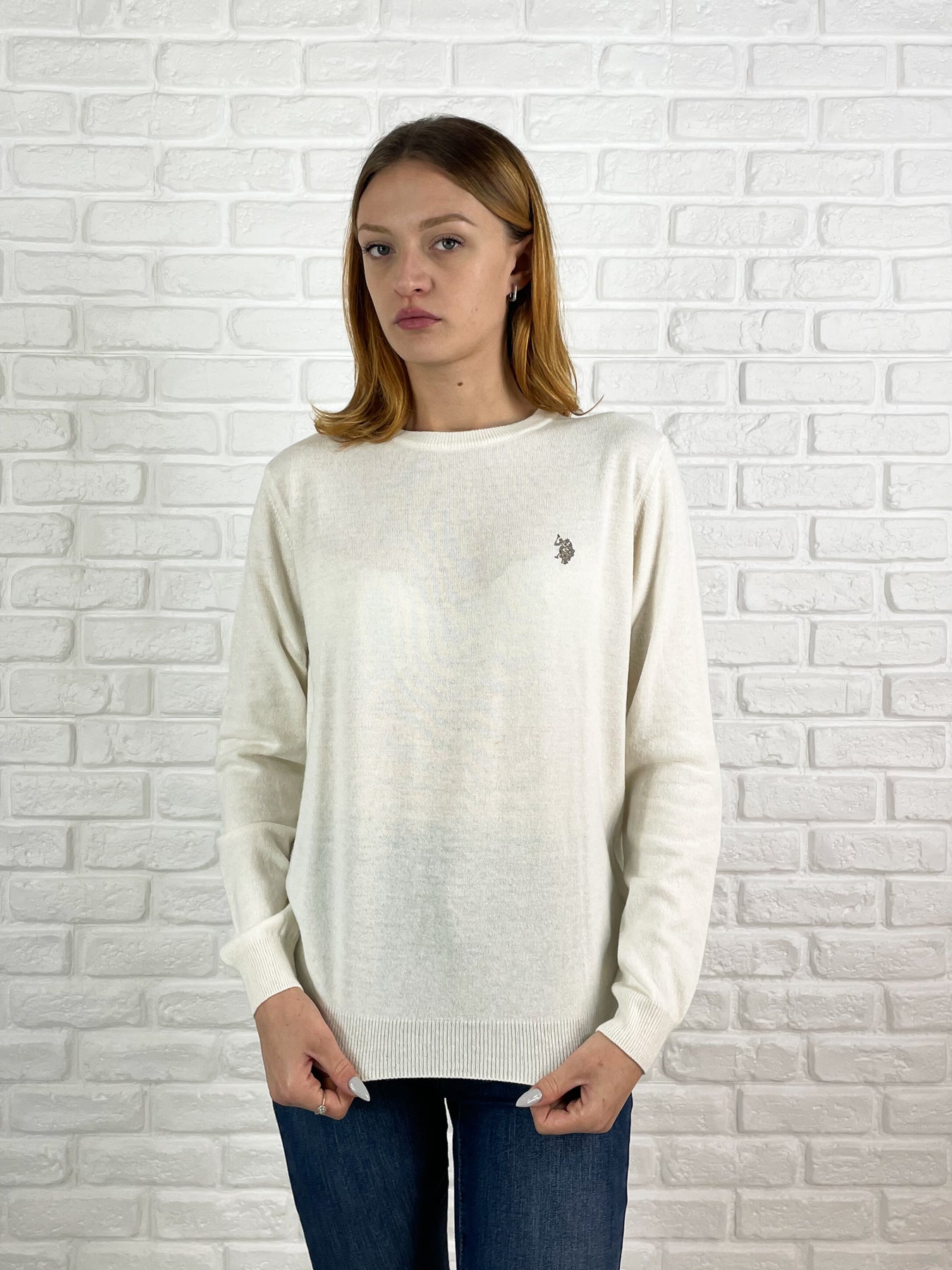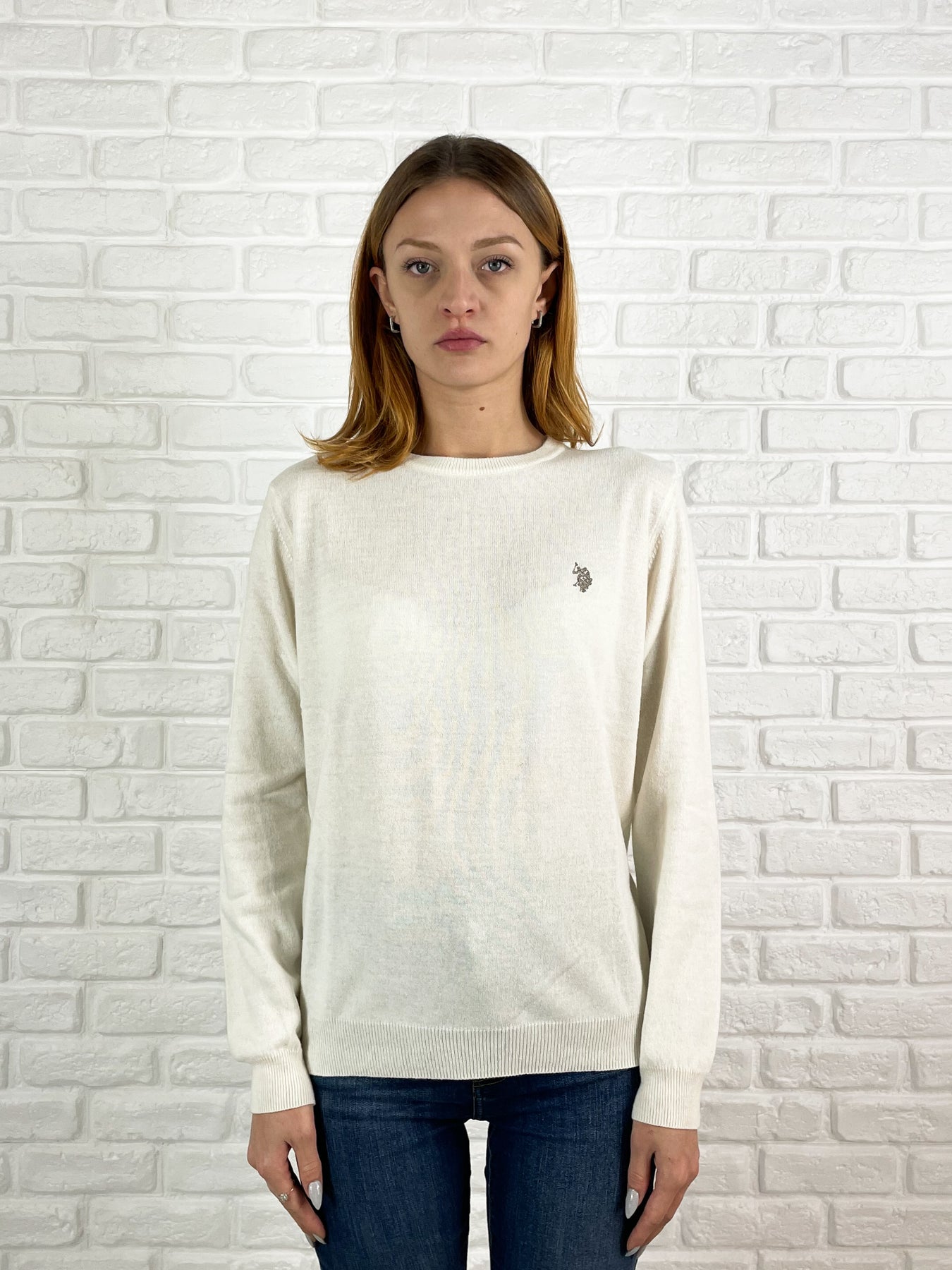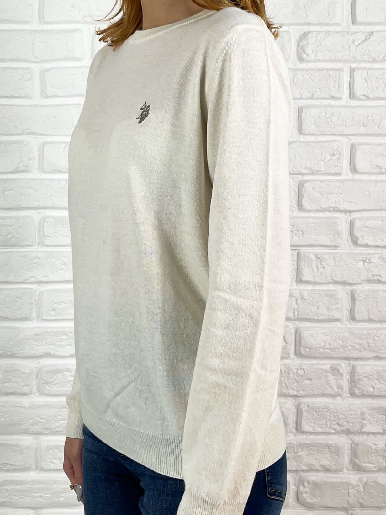 Prezzo Standard €99,00Maglione girocollo in misto lana color bianco latte, con maniche a giro e logo USPA ricamato sul lato cuore. Progettato con una vestibilità regolare, combina comfort e stile senza tempo.