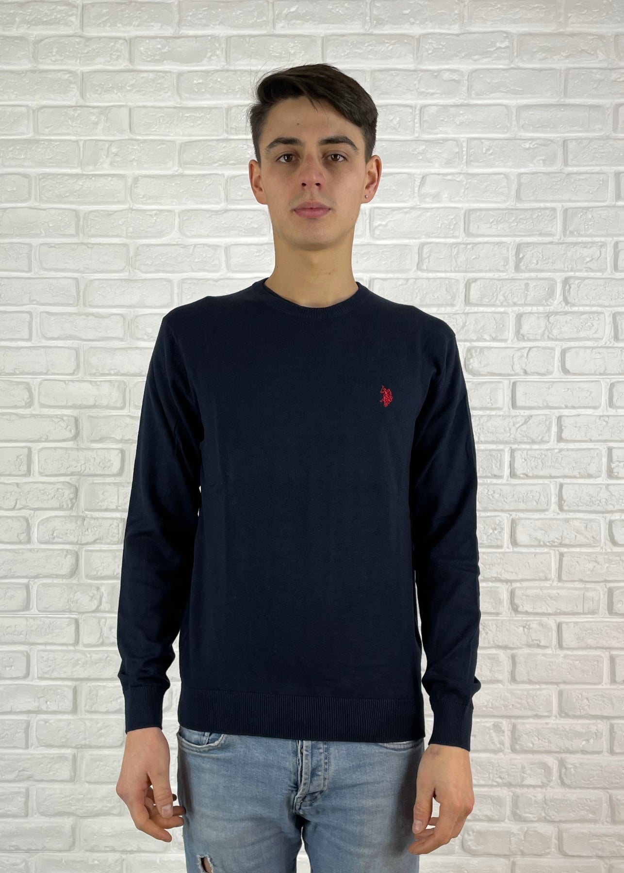 MAGLIONE LEON U.S.POLO GIROCOLLO COLORE BLU NOTTE