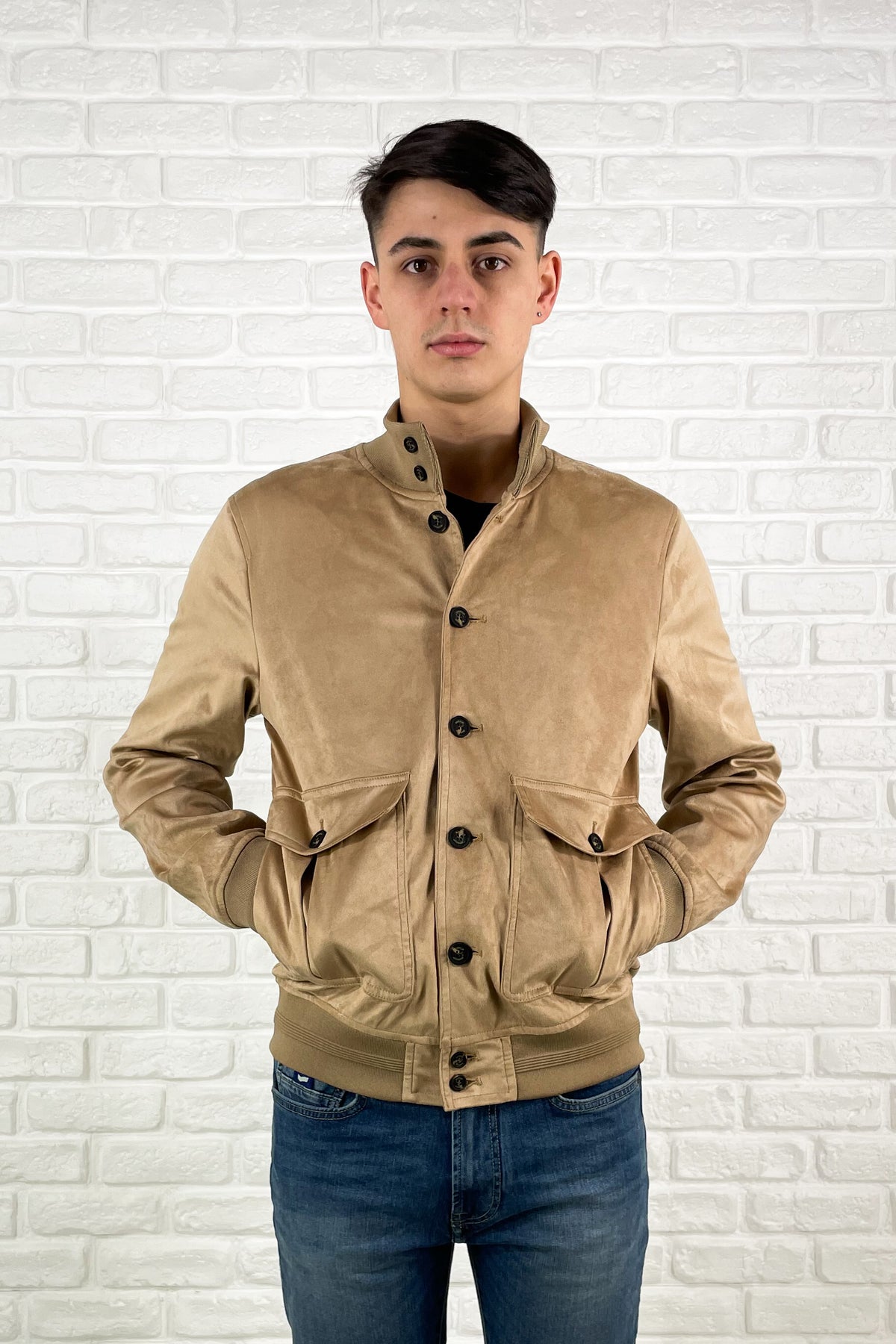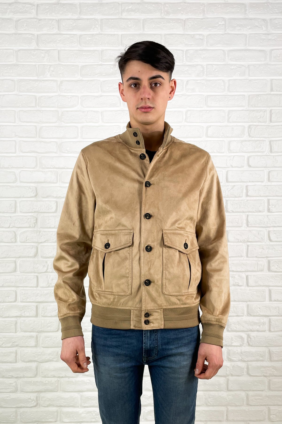 Prezzo Standard €109,00GIUBBINO IN ECODAINETTO COLORE CORDA, COLLO A LUPETTO, CHIUSURA CON BOTTONI, TASCHE LATERALI A DOPPIA APERTURA CON PATTINA FRONTALE CHIUSA CON BOTTONE E A FILETTO LATERALEI, COLLETTO FONDO E POLSINI ELASTICIZZATI, INTERNO FODERATO CON DUE TASCHE APERTE.