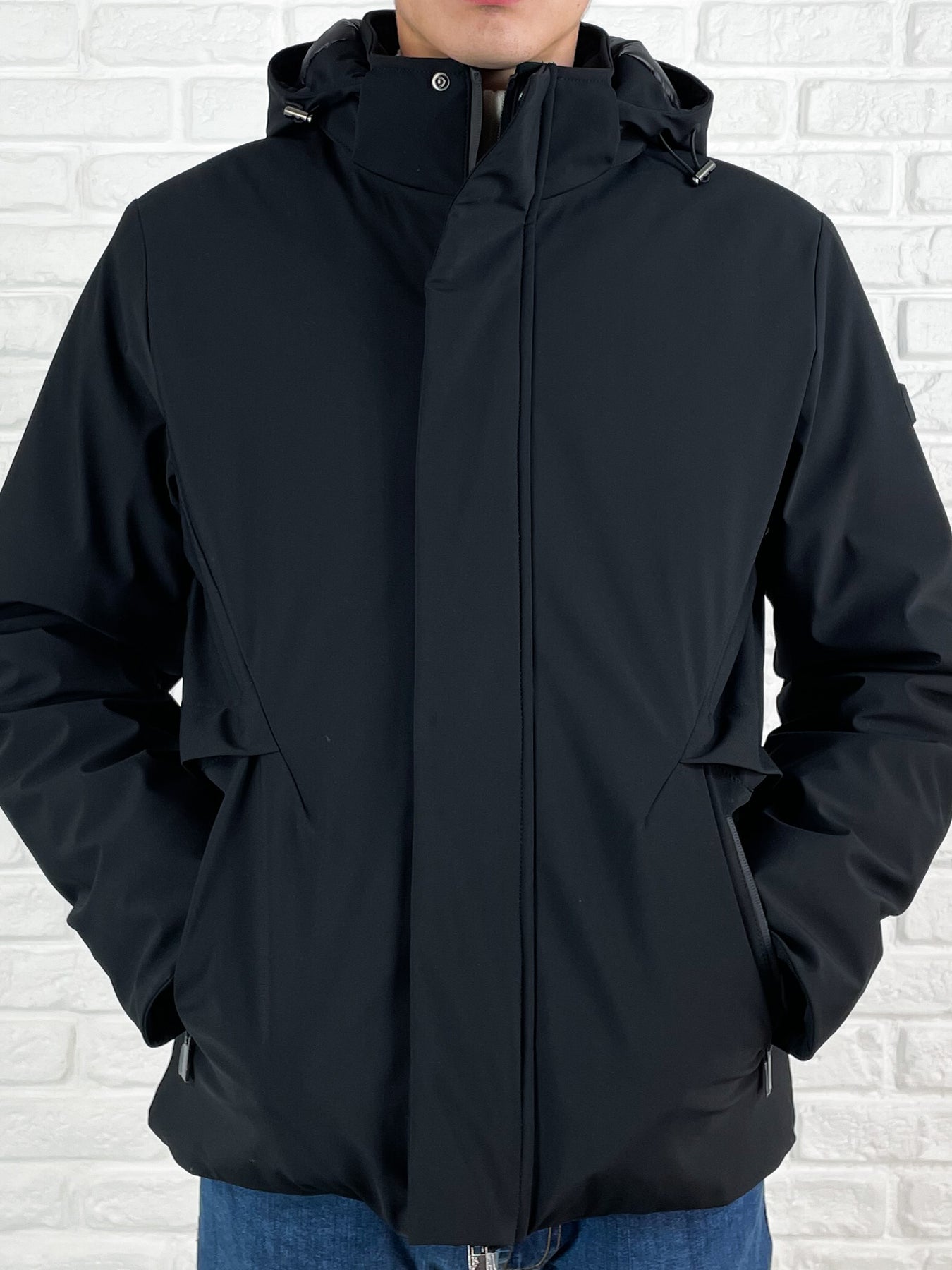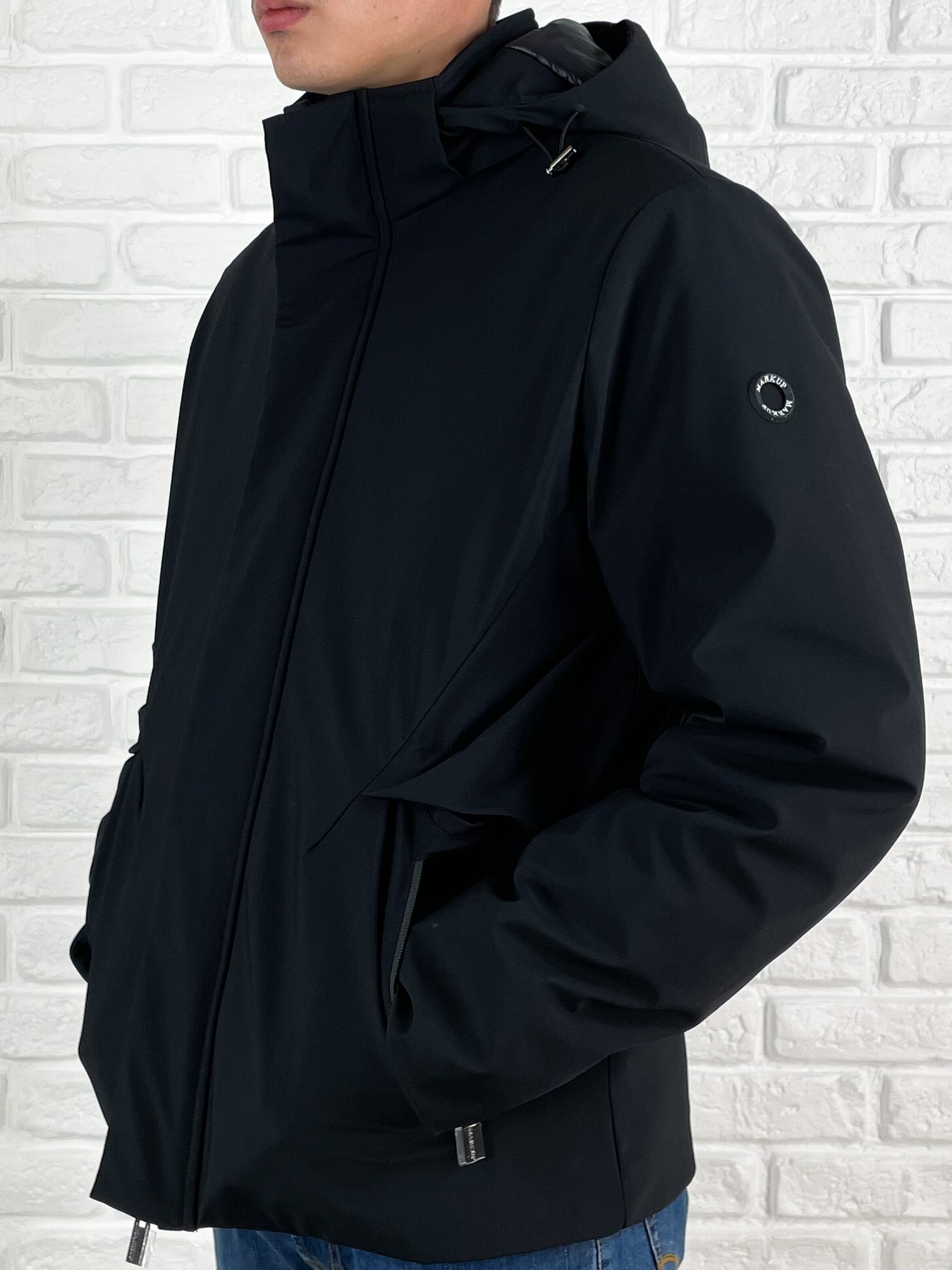 Prezzo Standard €169,00Parka corto imbottito nero in tessuto tecnico stretch, idrorepellente e antivento, perfetto per affrontare ogni avventura. Il cappuccio staccabile trapuntato con coulisse regolabile offre versatilità, mentre la chiusura fullzip termosaldata a doppio cursore con bottoni a pressione e pattina verticale garantisce protezione extra. Doppie tasche laterali a filetto con zip termosaldate e tasca aperta superiore aggiungono spazio pratico. Polsi in maglina elasticizzata e due tasche interne con zip completano il capo, arricchito dal logo Markup in gomma sulla manica sinistra e una vestibilità regolare per il massimo comfort.
